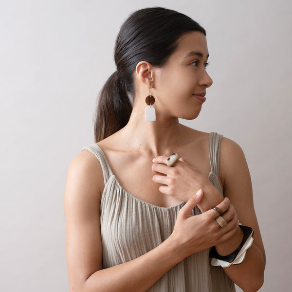 A daring accessory to add to your ensemble, the Square Bangle is sure to be the center of conversation. The Square Bangle is lightweight and thin and pairs well with the Wide Horn Bangle or other statement bangles. Assorted color tones.