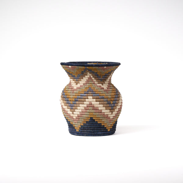 Create a stunning arrangement of dried flowers and grasses or add a glass cylinder filled with water for a bouquet of your favorite fresh cut flowers. This durable and artistically woven vase is beautiful as a centerpiece or on a mantel and woven in the rich color palette of our Rooted Collection, the 2026 annual small batch basket collection.