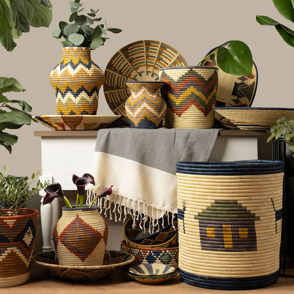 Handcrafted by women artisans from the Batoro tribe living in the very rural mountains of Western Uganda. These weavers are a part of a cooperative that provides training to single mothers, widows and other marginalized women who are subsistence farmers and weave baskets to provide additional income.
