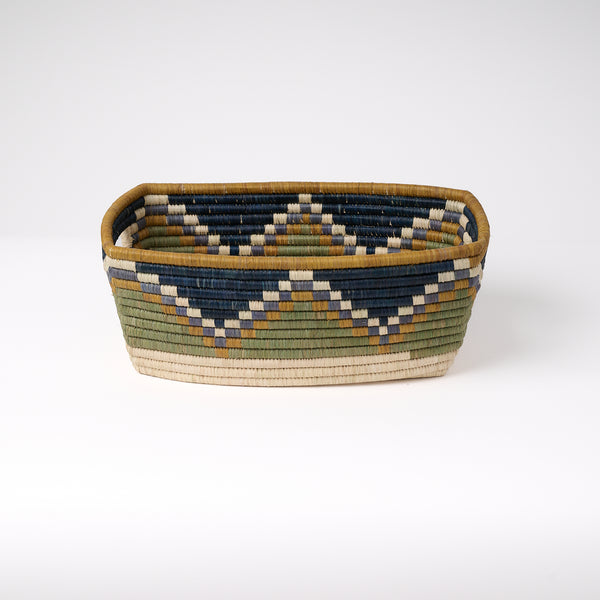 The Zig Zag Rectangle Basket with Handles, is more than functional, it's eye catching too. This versatile basket is thoughtfully woven in the rich color palette of our Rooted Collection, the 2026 annual small batch basket collection.